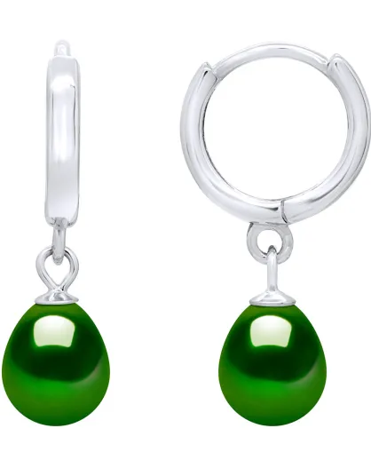 Boucles d'oreilles Argent & Perles de Culture d'Eau Douce Poires vertes