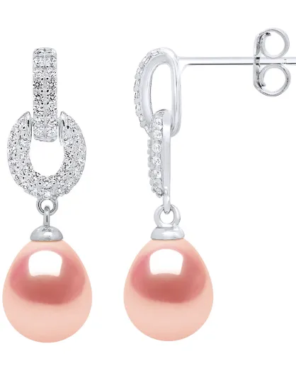 Boucles d'oreilles Argent & Perles de Culture d'Eau Douce Poires rose naturel