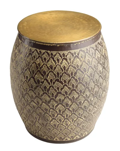 Table d'appoint motifs Honora marron antique - D.40xH.46 cm