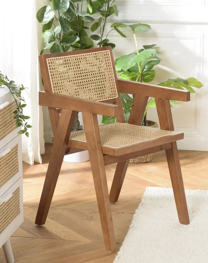 Fauteuil en bois d'Hévéa Albane beige - 51x53x82 cm