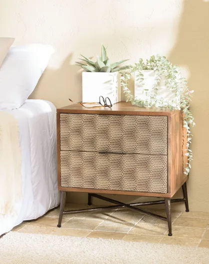 Chevet en bois de manguier 2 tiroirs Alix marron - 55x46x56 cm