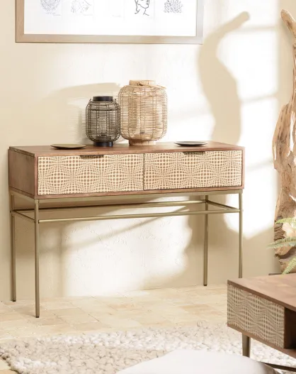 Console en bois de manguier 2 tiroirs Alix marron - 116x34x47 cm