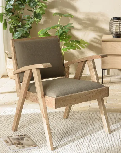 Fauteuil en Mindi tissu chiné Eris kaki - 65x65x75 cm