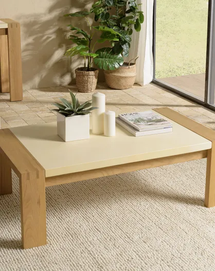 Table basse plateau encastré Grégoire chêne/beige - 122x70x42 cm