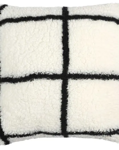 Coussin Sherpa à carreaux blanc/noir - 40x40 cm