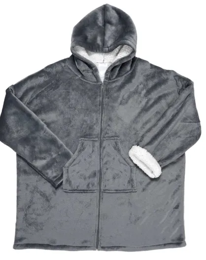 Sweat plaid zippé à capuche intérieur Sherpa gris