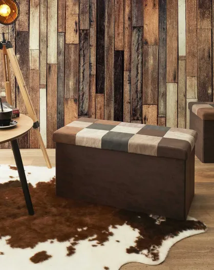 Coffre banc pliable Patchwork marron - 76x38x38 cm