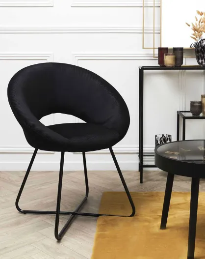 Fauteuil velours cotelé Giulia noir - 67x84x52 cm