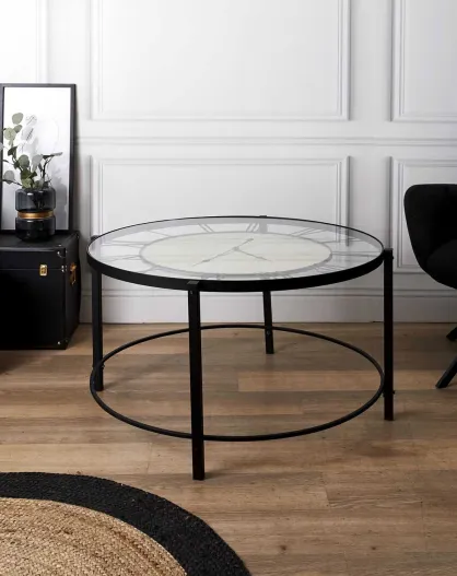 Table basse ronde pied conique métal Daly noire - 78x78 cm
