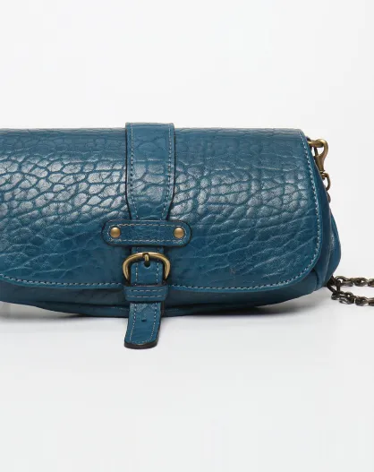 Sac bandoulière en Cuir d'Agneau Beauty goat bleu - 22x11x3 cm