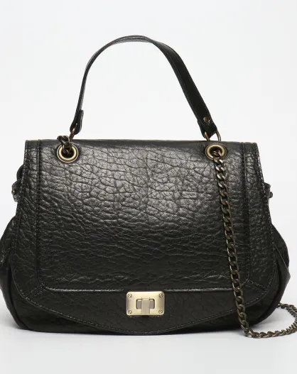 Sac bandoulière en Cuir d'Agneau Joyce noir - 27x22x8 cm
