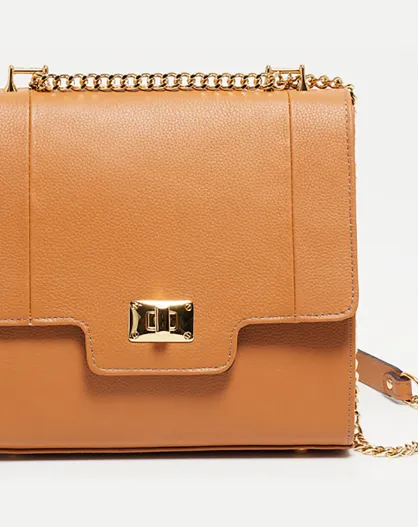 Sac bandoulière en Cuir de Vachette Tine camel - 24x23x7 cm