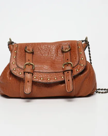 Sac bandoulière en Cuir Tane marron - 18x9x16 cm