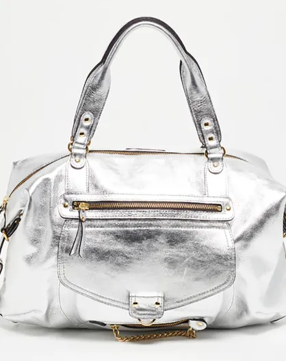 Sac à main en Cuir de Vachette Odelia argenté - 40x27x12 cm