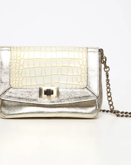 Sac bandoulière en Cuir d'Agneau Gaby doré/python blanc - 21x15x7 cm