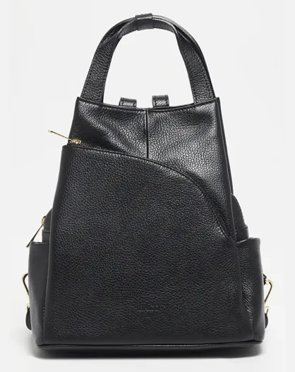 Sac à dos en Cuir Rhea de taille moyenne Noir-25.5x30x11.5 cm