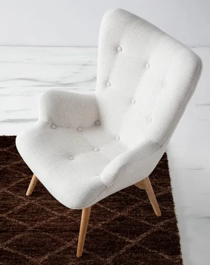 Fauteuil tapissé avce capiton gris/noyer - 70x80x92 cm