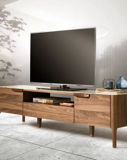 Meuble TV avec double tiroir. noyer/argenté - 180x44x39 cm