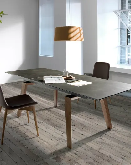 Table de salle à manger rectangulaire à rallonge avec plateau noir/noyer - 180x90x75 cm