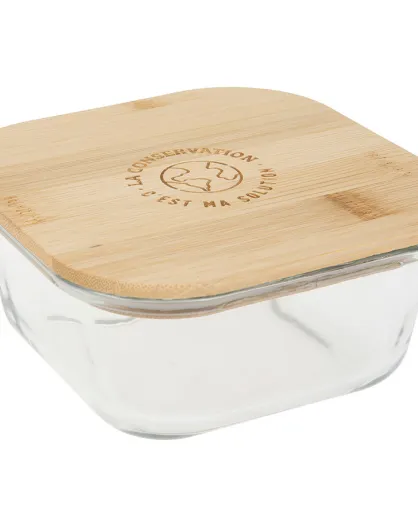 Boîte de conservation carrée avec couvercle en bambou transparente - 52cl