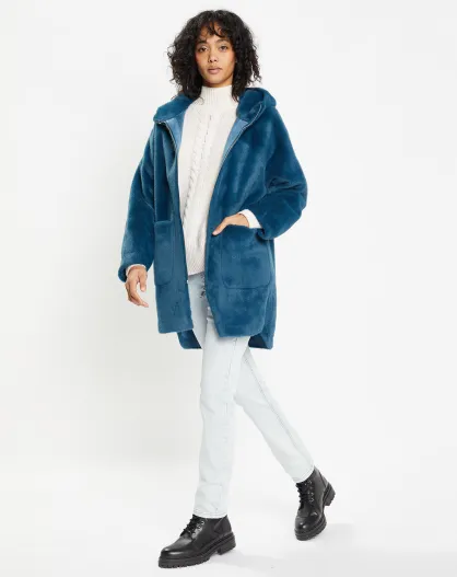Manteau en Fausse Fourrure Luna bleu foncé