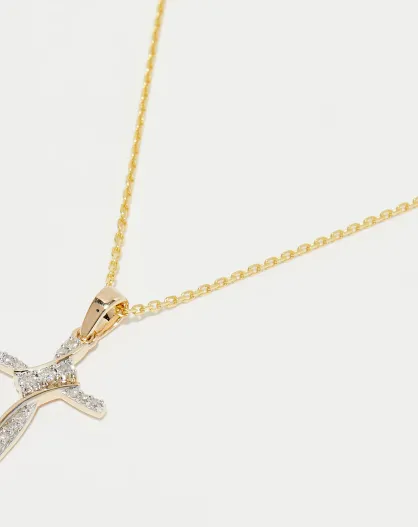 Pendentif Ma croix torsadée Diamants 0.06 ct or jaune