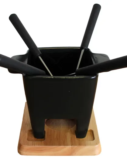 Fondue à chocolat en céramique - 4 personnes noir/bois - 13.5x9x9.7 cm