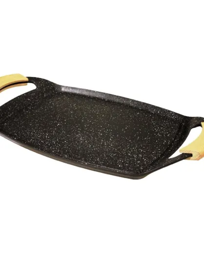 Plancha rectangulaire - anses en bois induction noir/bois - 38x28.5 cm