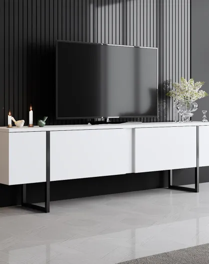 Meuble TV Luxe noir/blanc - 180x30x50 cm