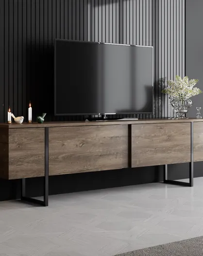 Meuble TV Luxe noyer/noir - 180x30x50 cm