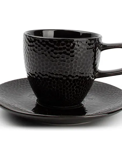 4 Tasses et soucoupes Mielo noires - 11x7x8 cm