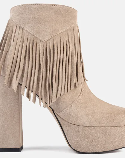 Bottines en Velours de Cuir Crazy In The Night beiges - Talon 12 cm