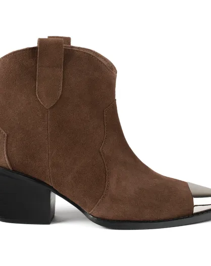 Boots en Velours de Cuir Manhattan Skyline marron - Talon 4 cm