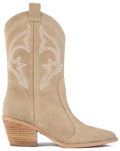 Santiags en Velours de Cuir Only Want You beiges - Talon 6 cm