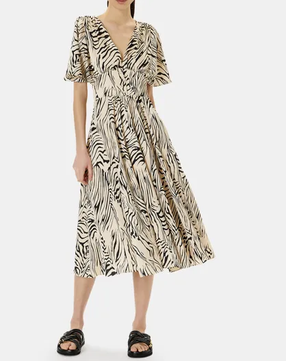 Robe Rafi imprimée zèbre noir/beige