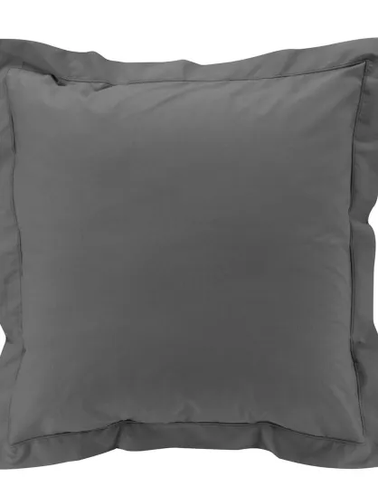 2 Taies d'oreiller volant plat 100% percale de coton Percaline acier