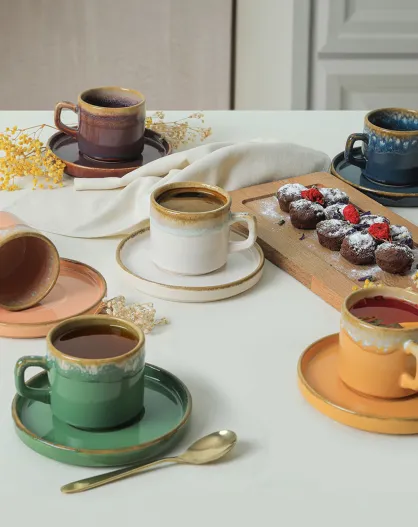 Service de tasses à thé et soucoupes blanc/bleu/violet - 12 pièces