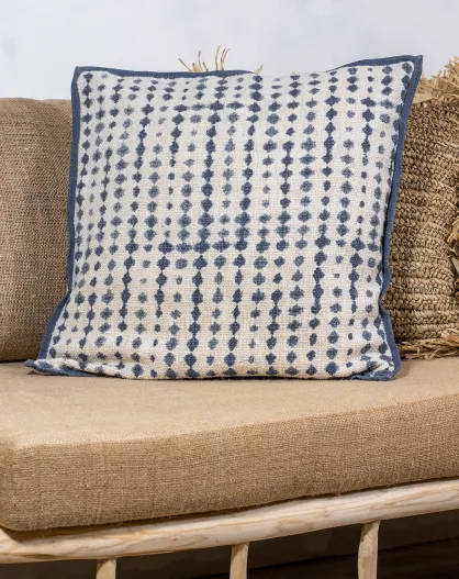 Coussin imprimé passepoil Galo bleu - 45x45 cm