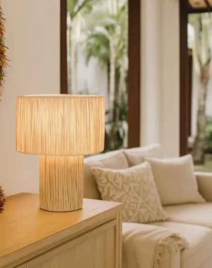 Lampe à poser en Raphia fait main El Nido naturelle - D.30xH.35 cm