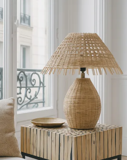 Lampe à poser en Rotin tréssé main Joyce naturelle - 40x44 cm