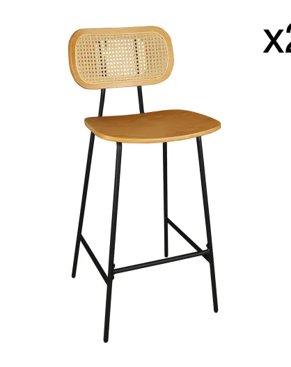 2 Chaises de bar en Rotin Nosara naturel/noir - 45x50x99 cm