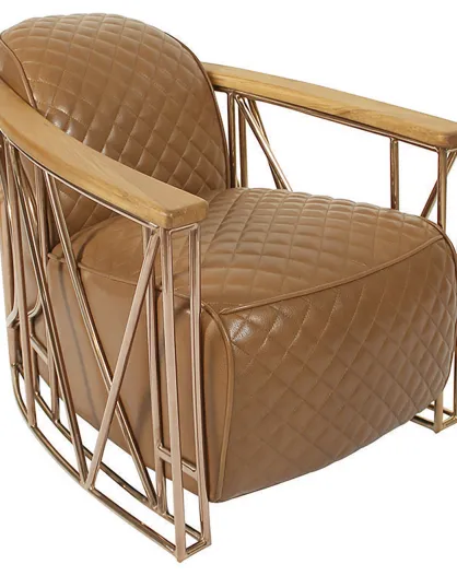 Fauteuil en Cuir matelassé Structure Ennio cuivre/noisette - L.95xH.73xP.70 cm