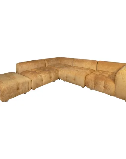 Canapé d'angle 5 Modules en Velours pané Twiggy orange - 300x265xH.67 cm
