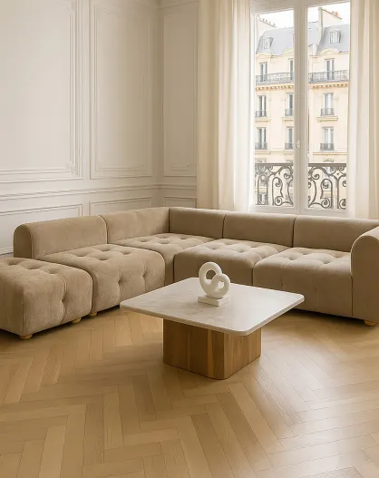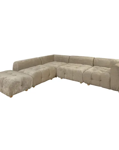 Canapé d'angle 5 Modules en Velours pané Twiggy gris/taupe - 300x265xH.67 cm