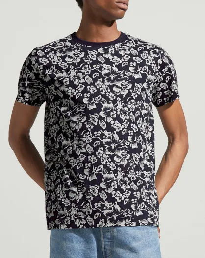 T-Shirt Regular Fit à fleurs bleu foncé