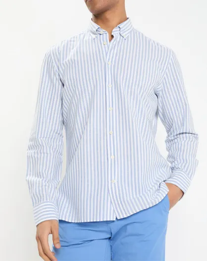 Chemise en Coton & Lin Slim Fit à rayures bleu/blanc