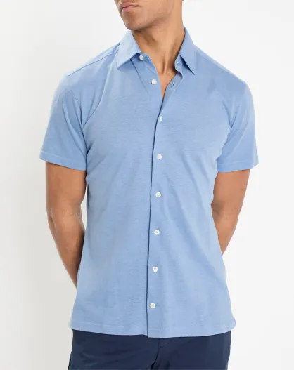Chemise en Lin & Coton Slim Fit manches courtes Tricot bleu moyen