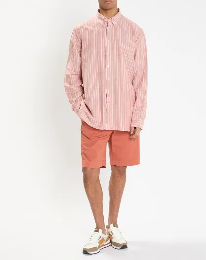 Chemise en Lin & Coton Slim Fit à rayures orange moyen
