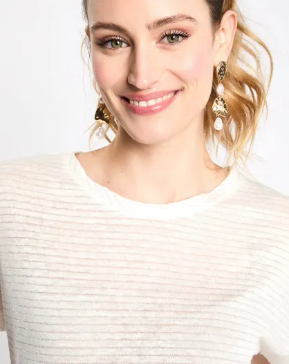 T-Shirt en Lin manchhes courtes rayé lurex écru