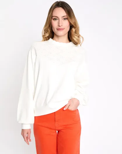 Pull col montant ajouré naturel